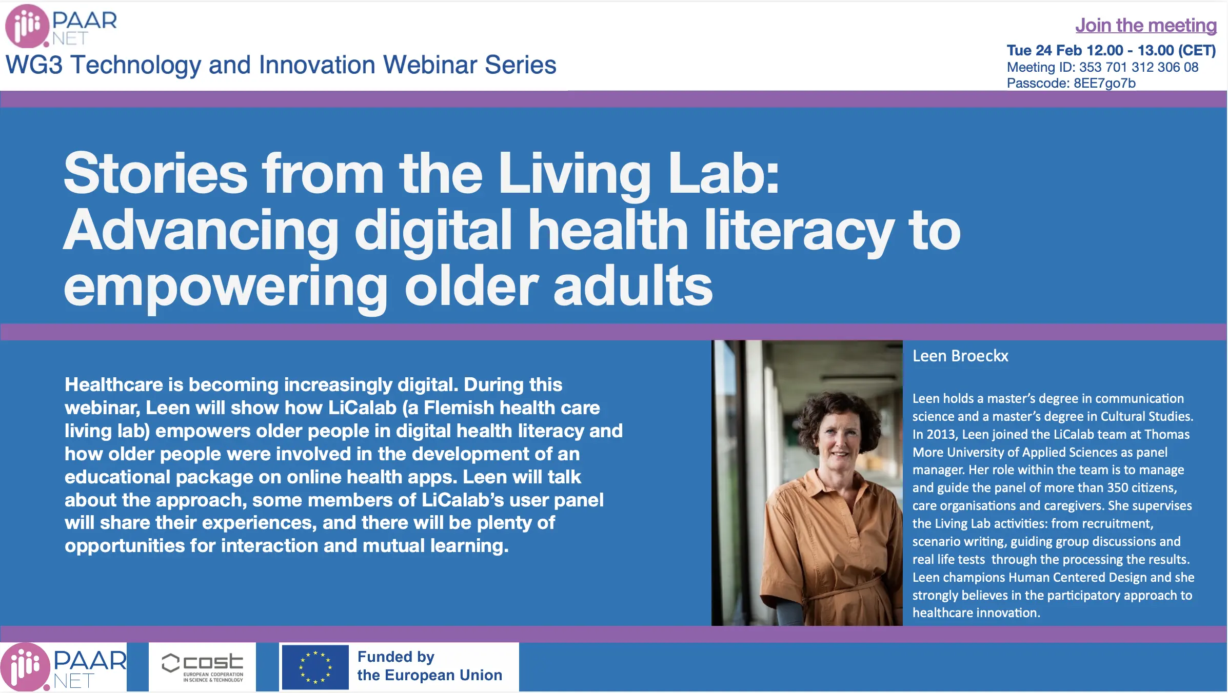 Stories from the Living Lab: Advancing digital health literacy to empowering older adults Healthcare is becoming increasingly digital. During this webinar, Leen […]